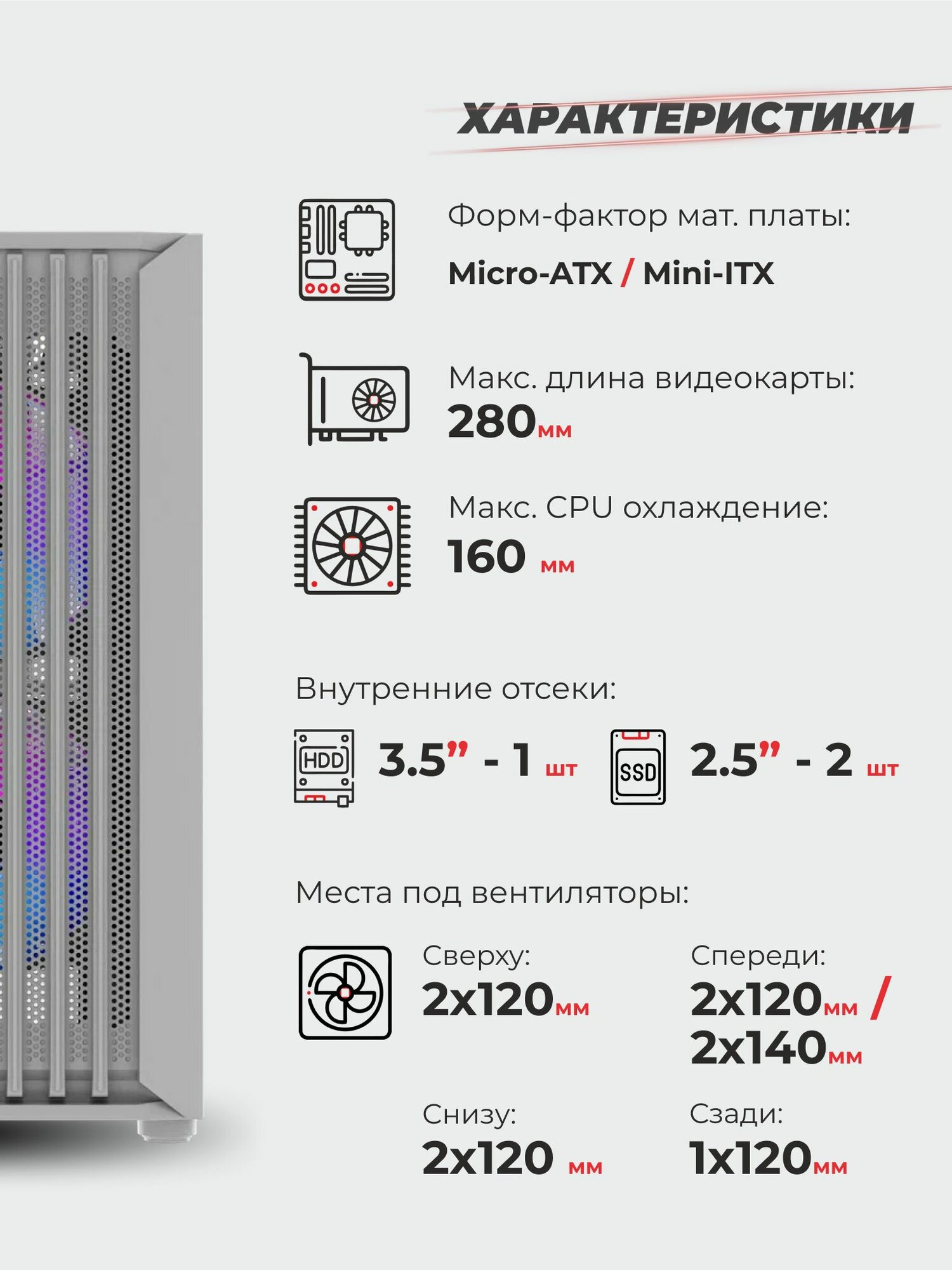 Купить Корпус Warrior Z5M + 3 ARGB вентилятора + закаленное стекло, Micro-ATX, Mini-ITX с доставкой по всей России.