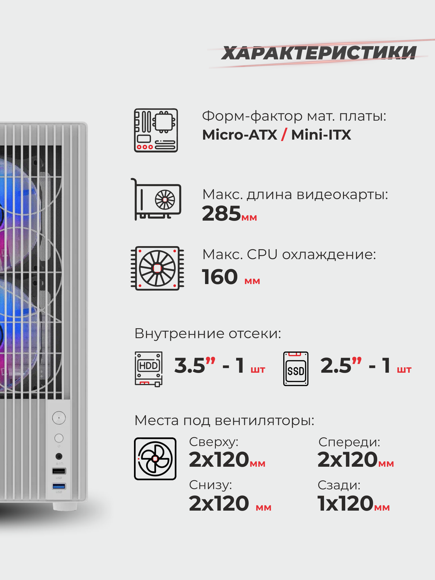 Купить Корпус Warrior Z7M + 3 ARGB вентилятора + закаленное стекло, Micro-ATX, Mini-ITX с доставкой по всей России.