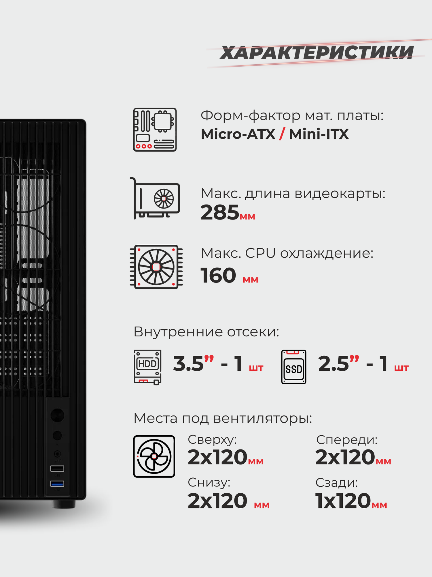 Корпус Warrior Z7M - это прочный и стильный корпус, который подойдет для различных конфигураций материнских плат, включая Micro-ATX, Mini-ITX.