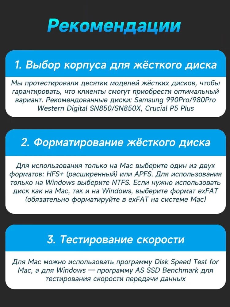 Независимо от того, являетесь ли вы профессиональным создателем контента, работающим с видео сверхвысокой четкости и сложными файлами проектов, или корпоративным пользователем, который выполняет резервное копирование и совместную работу с данными на нескольких устройствах, ACASIS TB501Pro с его преимуществами высокоскоростной передачи данных, стабильной совместимости и эффективного рассеивания тепла может стать мощным помощником для расширения хранилища, повышения эффективности работы и устранения узких мест в хранилище устройств.