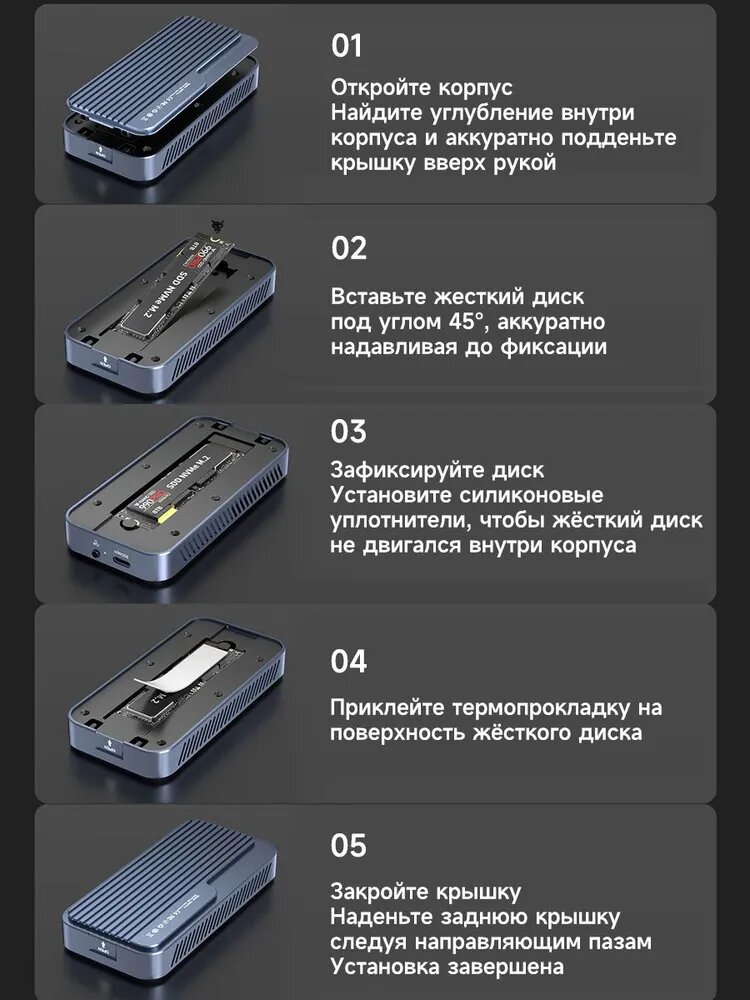 Установка без инструментов: отвертка или другие инструменты не требуются, M.2 SSD можно разобрать и установить вручную, и новички могут легко управлять им, что делает ежедневные обновления и замены жесткого диска более удобными.