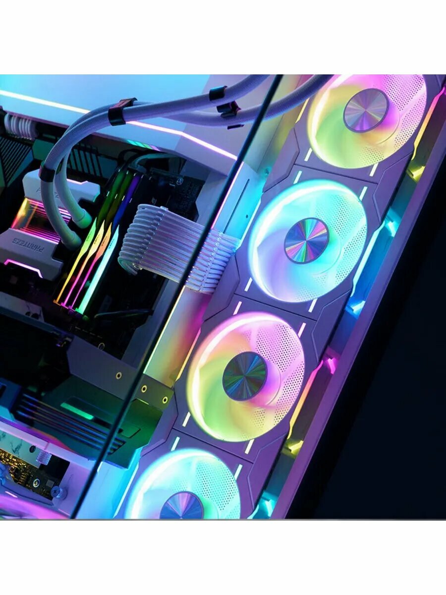 D30-120 Премиум-вентилятор D-RGB Phanteks D30-120 оснащен встроенной подсветкой D-RGB по всей раме и лопастям со всех сторон. Несколько рам вентилятора D30-120 можно соединить вместе в одну с помощью мостовых соединителей и винтовых крышек для уменьшения количества кабелей, что приводит к чрезвычайно чистым сборкам.