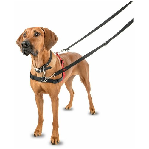 5. Для коррекции поведения используйте 2 поводка: один крепится к кольцу на груди, второй - к кольцу на спине.