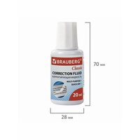 Корректирующая жидкость с кисточкой набор 12 штук BRAUBERG "Classic" . Штрих замазка позволяет аккуратно корректировать и исправлять опечатки , машинописный или рукописный текст . Быстросохнущий корректор является морозоустойчивым и легко высыхает на бумаге . Перед использованием необходимо встряхнуть . Флакона объемом 20 мл хватит на продолжительное время . Кисть позволяет легко наносить жидкость . Обязательный предмет в вашей канцелярии . Тип товара: корректирующая жидкость . Серия:"Classic" . Основа: спиртовая . Объем флакона: 20 мл. Вид нанесения: кисточка . Морозоустойчивая: да . Быстро высыхает на бумаге: да . Бренд -брауберг . Производитель - Китай. Комплект 12 штук .