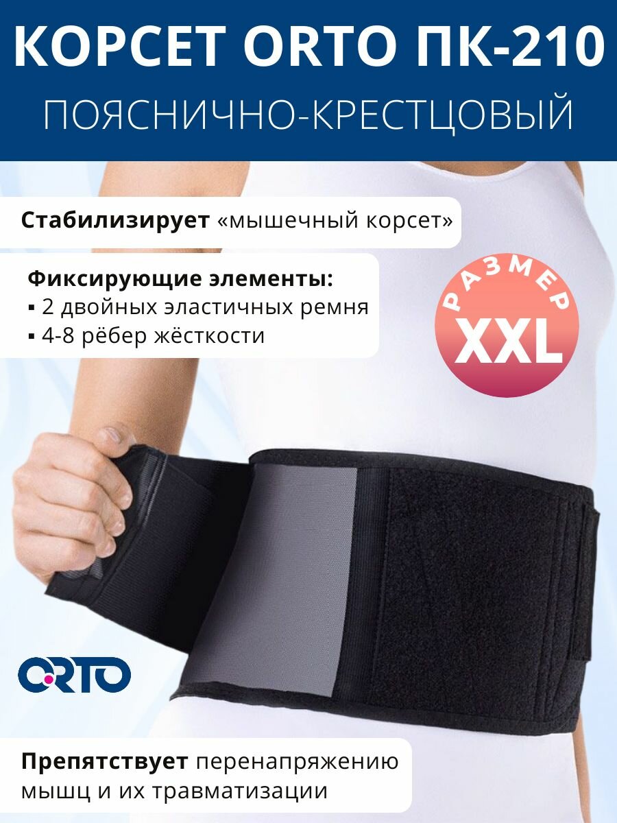 Корсет на поясничный отдел позвоночника 4-8 ребер жесткости, высота 20см ORTO ПК-210 черный, XXL: сравнение цен, характеристики, фото, актуальное наличие и цены.
