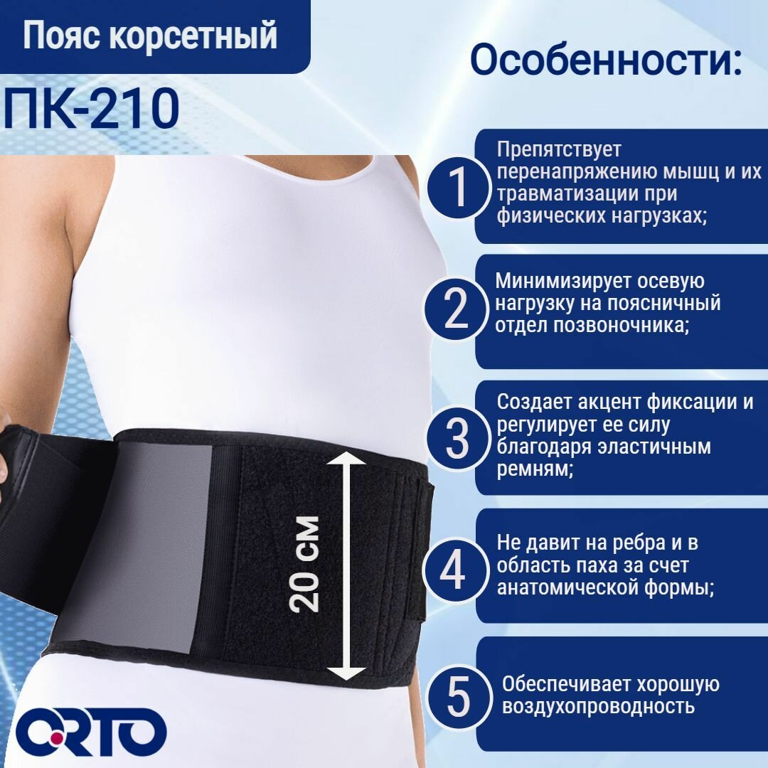 Корсетный пояс для спины / бандаж для поясницы ORTO ПК-210, черный, размер XXL: сравнение цен, характеристики, фото, актуальное наличие и цены.