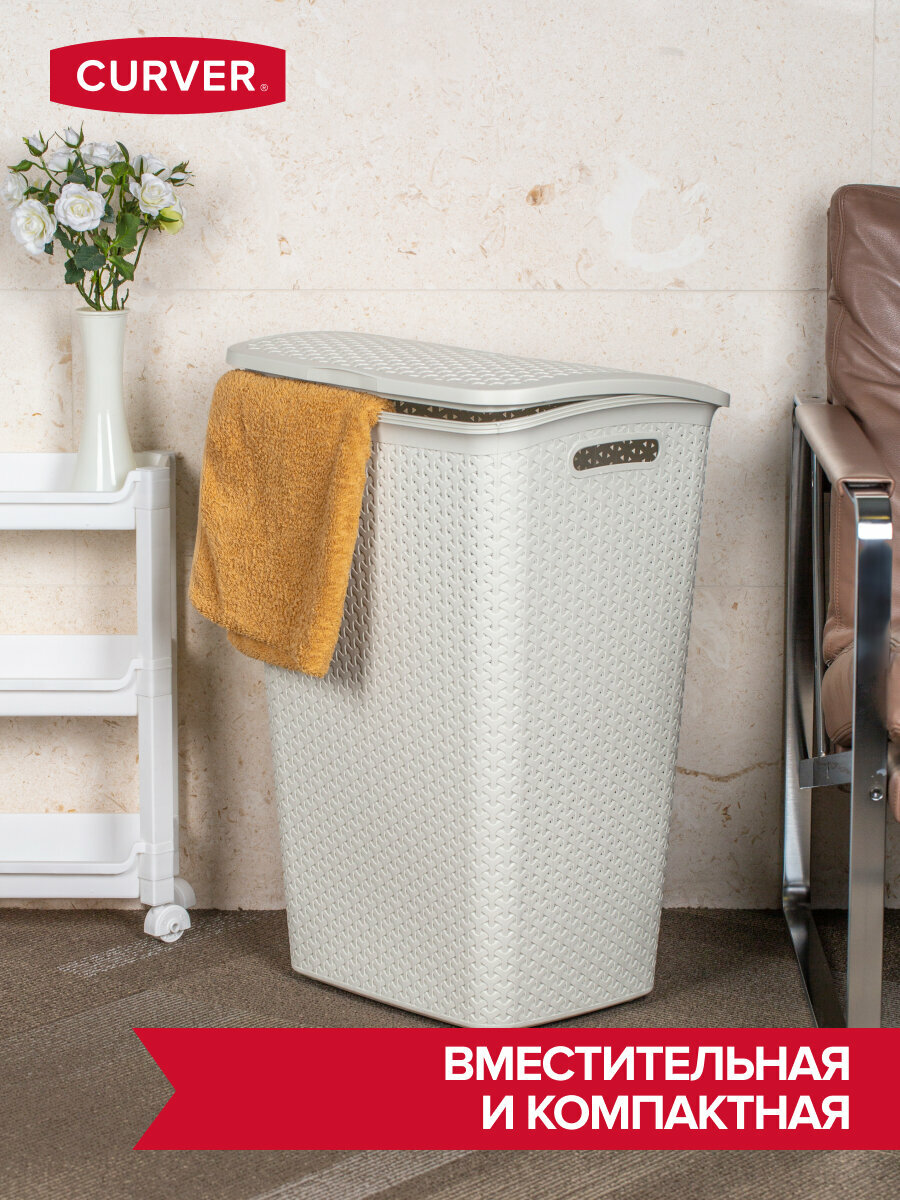 Корзина бельевая с откидной крышкой, 55 л, CURVER MY STYLE, пластик, цвет кремовый: сравнение цен, характеристики, фото, актуальное наличие и цены.
