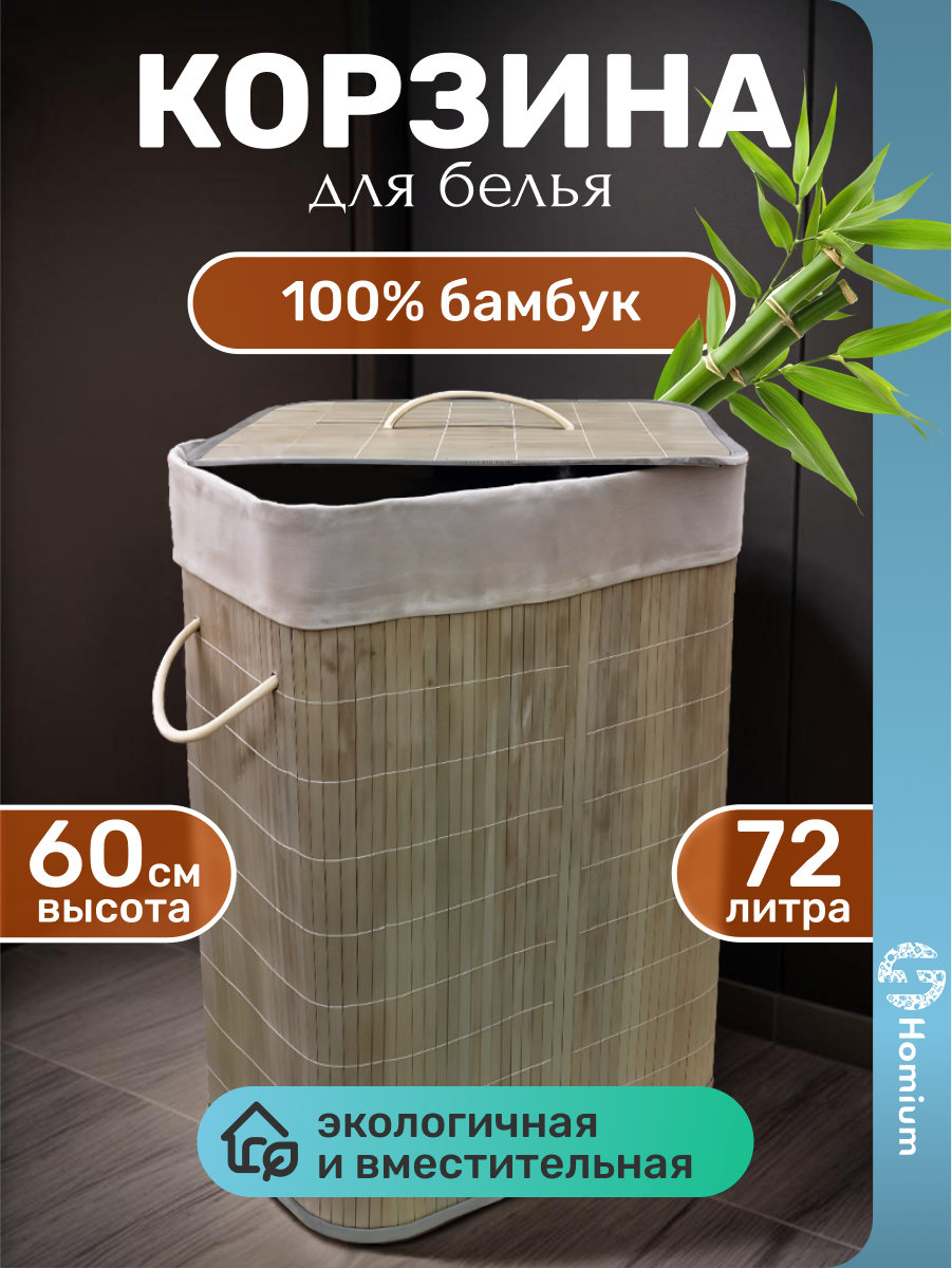 Корзина бельевая, для хранения вещей Homium for Home, Eco, размер 40*30*60см (светлое дерево) 72 л: сравнение цен, характеристики, фото, актуальное наличие и цены.