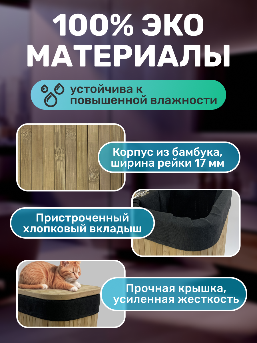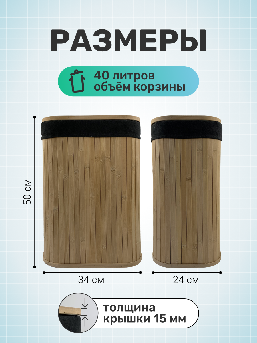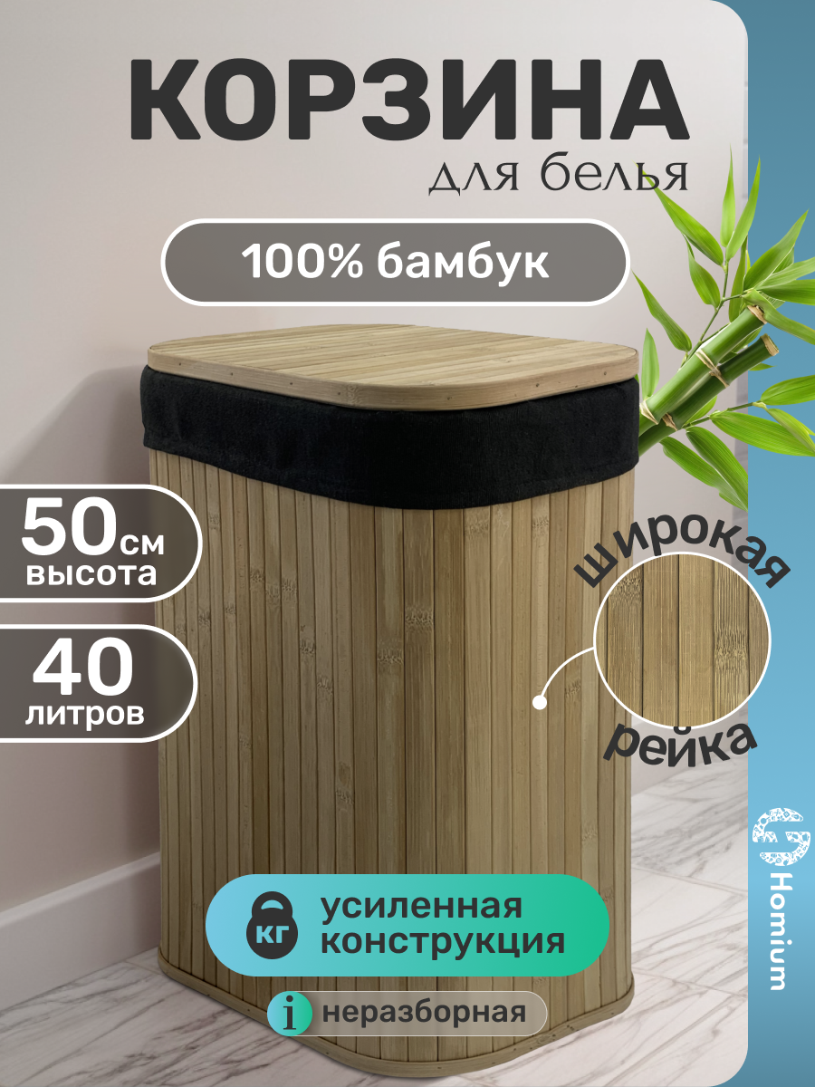 Корзина бельевая с крышкой Homium for Home, Eco, бумбук, размер 34*24*50см, 40 литров: сравнение цен, характеристики, фото, актуальное наличие и цены.