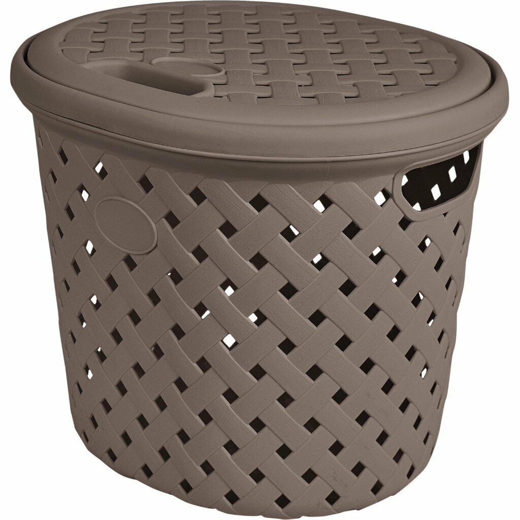 Купить Корзина для белья, 14 л, 28х28х32.5 см, овальная, пластик, шоколадный мокко, с крышкой, Plast team, Rattan, PT408811 с доставкой по всей России.