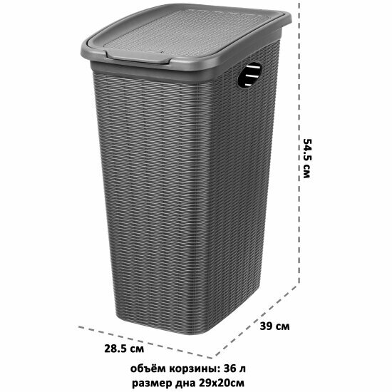 Корзина для белья EL Casa "Элеганс" объемом 36 литров станет незаменимым помощником в организации пространства в вашей ванной комнате. Размеры корзины составляют 39*28,5*54,5 см, а размер дна - 29*20 см.