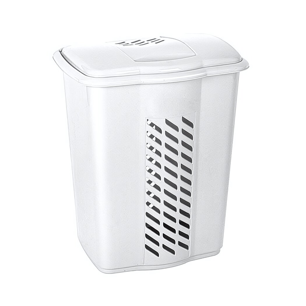 Корзина для белья 60л белая, пластиковая, с крышкой и вентиляцией