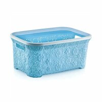 Корзина для белья Ажурная 35 л, голубая, пластиковая, с ручками
