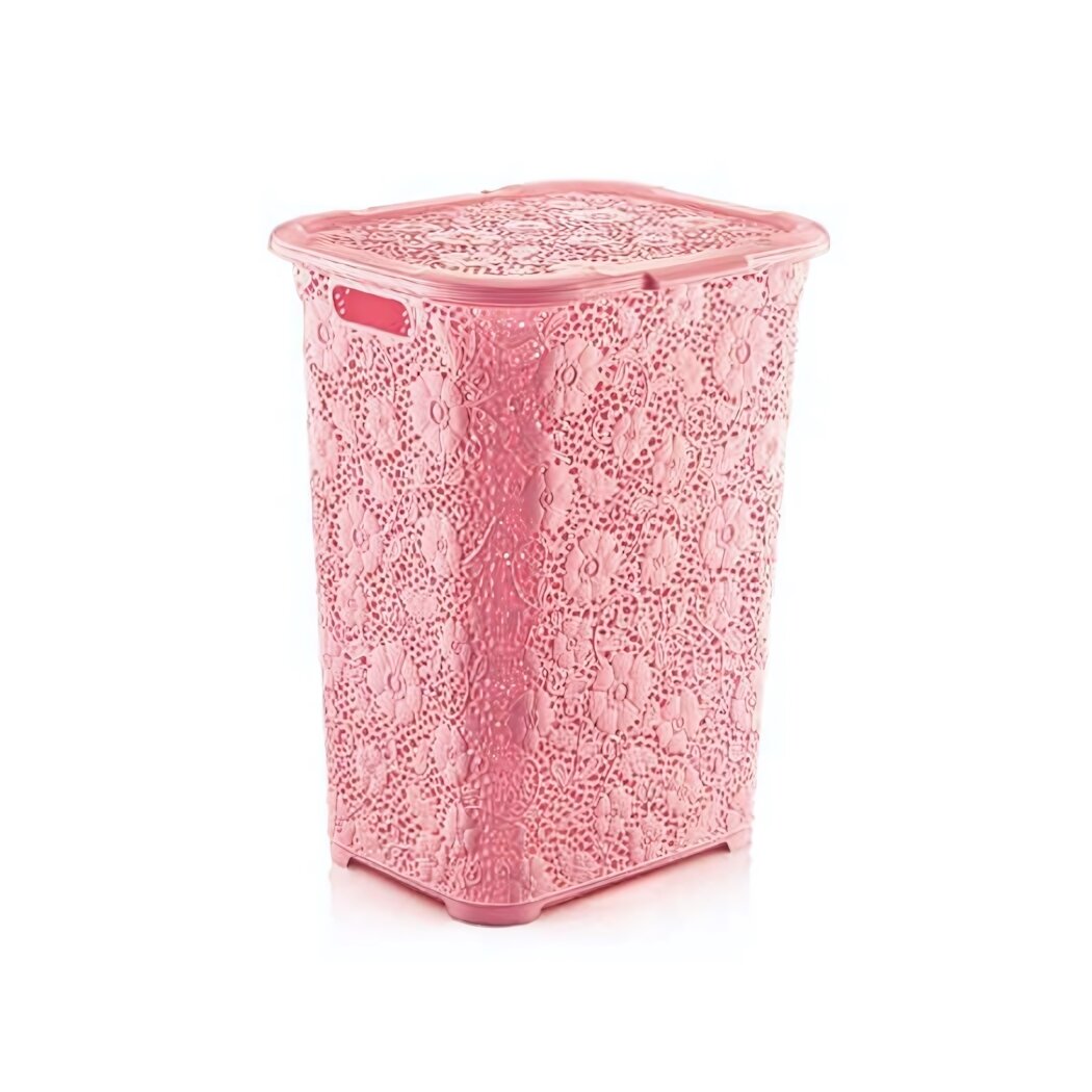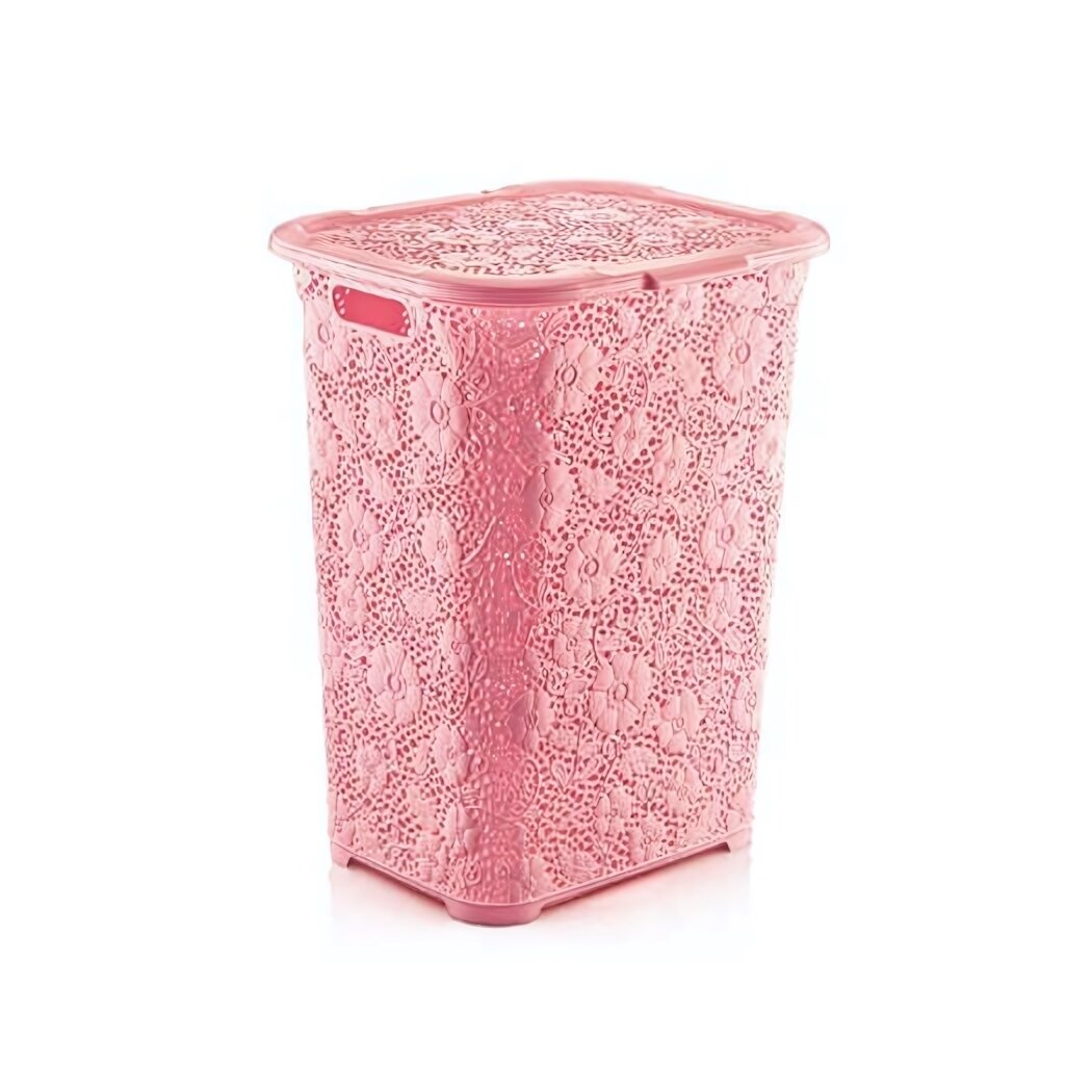 Корзина для белья 'Ажурная' 50л, розовый, пластик с перфорацией