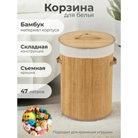 корзина для белья BLB-08-D изготовлена из натуральных материалов (древесина бамбук, лён), легкая и прочная, быстро собирается и разбирается, занимает мало места в разобранном виде, обработана антисептиком, окрашена
