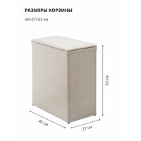 Корзина для белья 46х27х53см, HB-012 - это стильное и практичное решение для хранения белья и различных предметов в вашем доме. Элегантный дизайн и нейтральный светло-бежевый цвет корзины отлично впишутся в интерьер спальни или ванной комнаты.