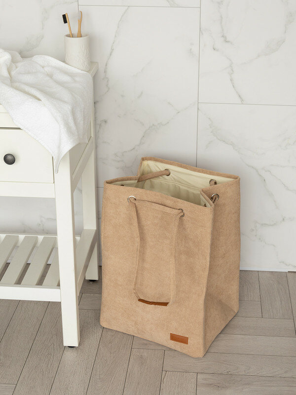 Корзина для белья DeNASTIA вельвет, 35x30x50см, цвет бежевый
