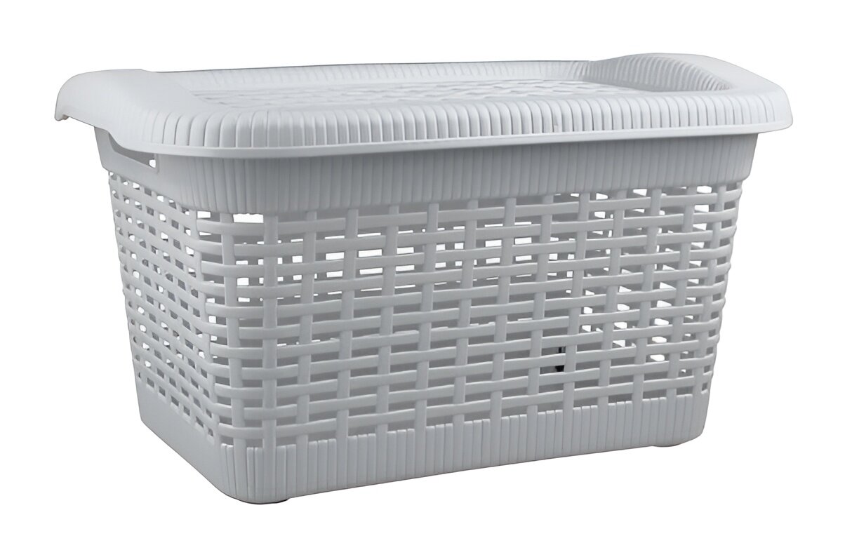 Корзина для белья, стилизованная под натуральный ротанг, гармонично впишется в ванную комнату. Для удобства переноски по бокам корзины предусмотрены специальные отверстия. Крышка скрывает содержимое корзины от посторонних глаз, а также может служить дополнительным местом для хранения легких туалетных принадлежностей. Корзина изготавливается из прочного и долговечного полипропилена, отвечающего требованиям влажного помещения. Естественные нейтральные цвета и приятная фактура делают корзину эстетически привлекательным дополнением интерьера ванной комнаты.