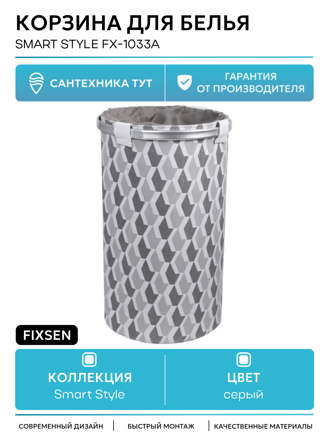 Купить Корзина для белья Fixsen Smart Style FX-1033A Серая, современный стиль с доставкой по всей России. Корзина для белья Fixsen Smart Style FX-1033A Серая, современный стиль: сравнение цен, характеристики, фото, актуальное наличие и цены.