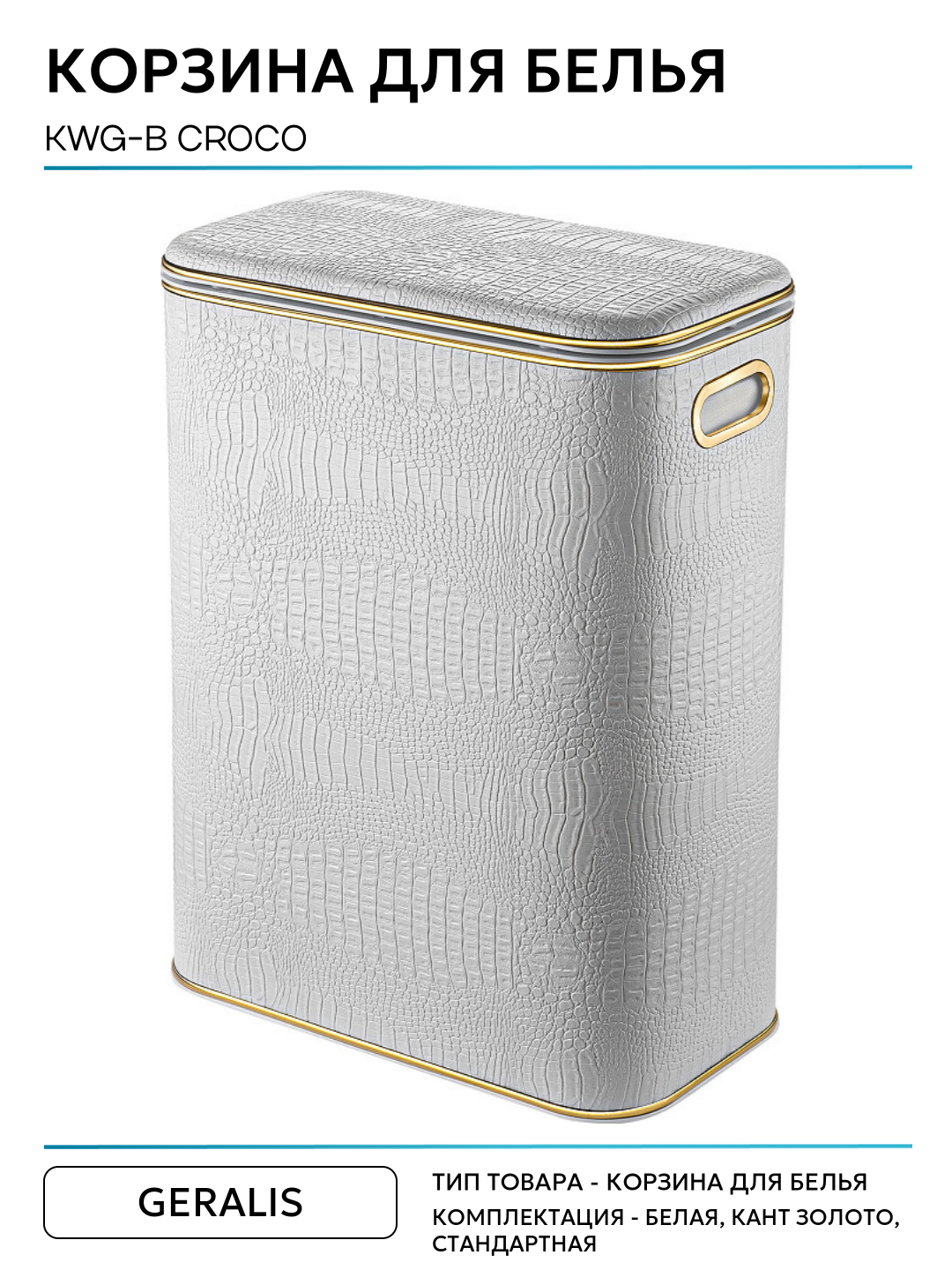 Купить Корзина для белья Geralis KWG-B CROCO белая, кант золото, стандартная с доставкой по всей России. Корзина для белья Geralis KWG-B CROCO белая, кант золото, стандартная: сравнение цен, характеристики, фото, актуальное наличие и цены.