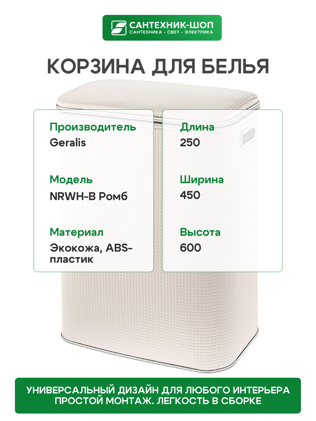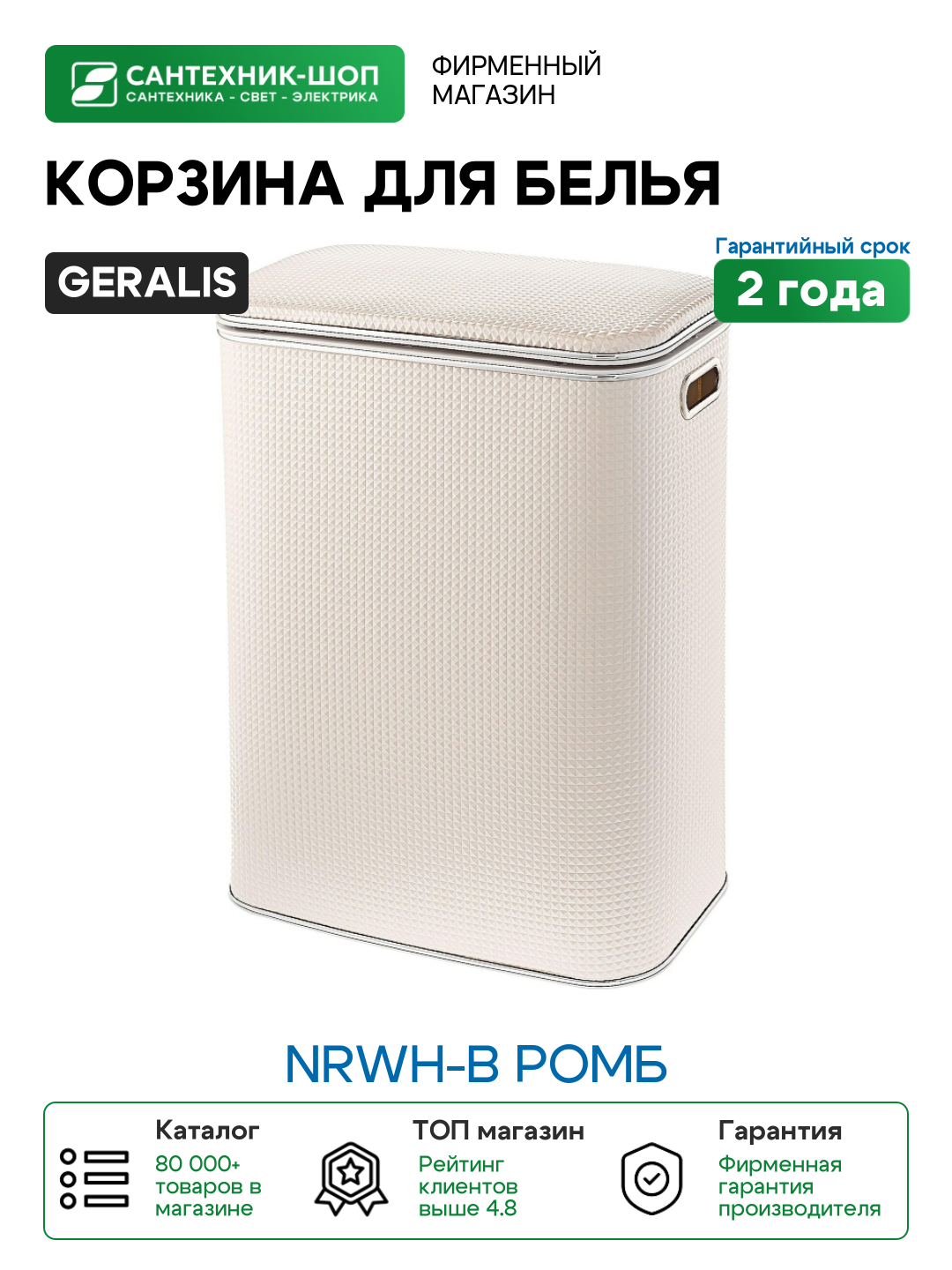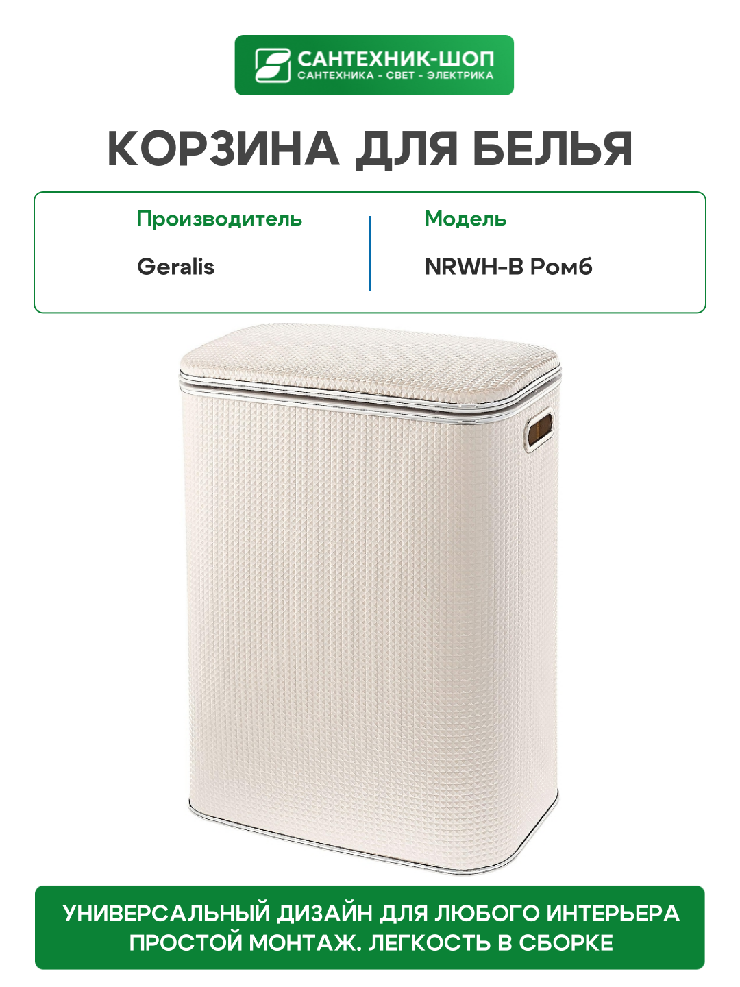 Купить Корзина для белья Geralis NRWH-B Ромб цвет Белый, кант Хром, стандартная с доставкой по всей России. Корзина для белья Geralis NRWH-B Ромб цвет Белый, кант Хром, стандартная: сравнение цен, характеристики, фото, актуальное наличие и цены.