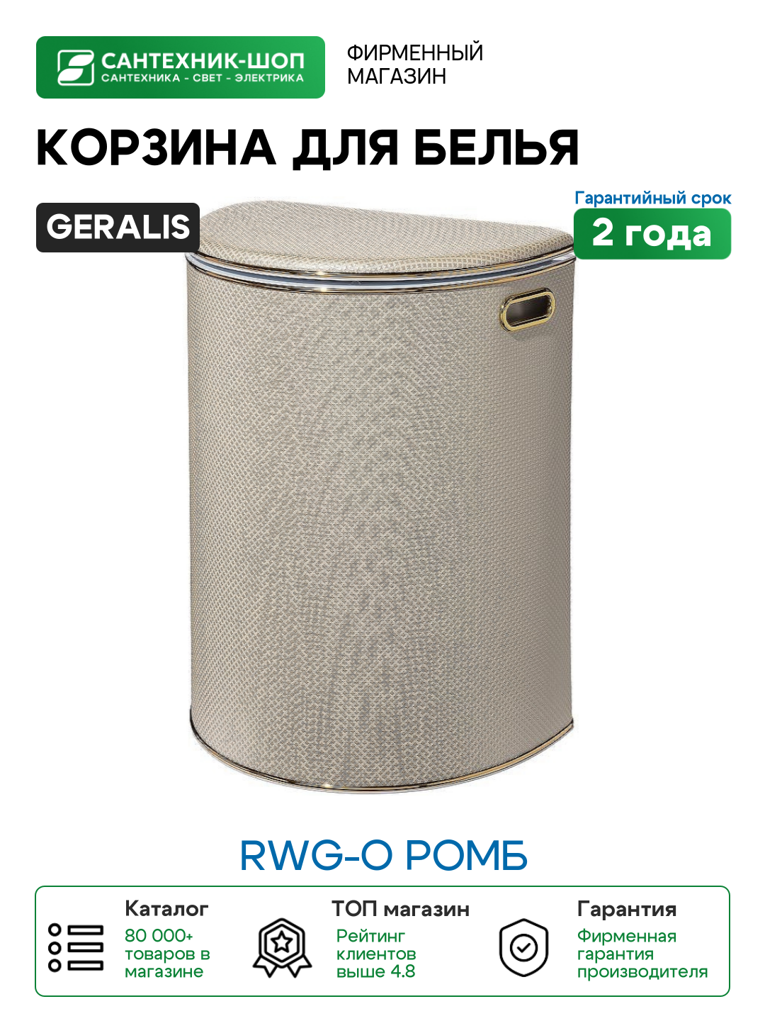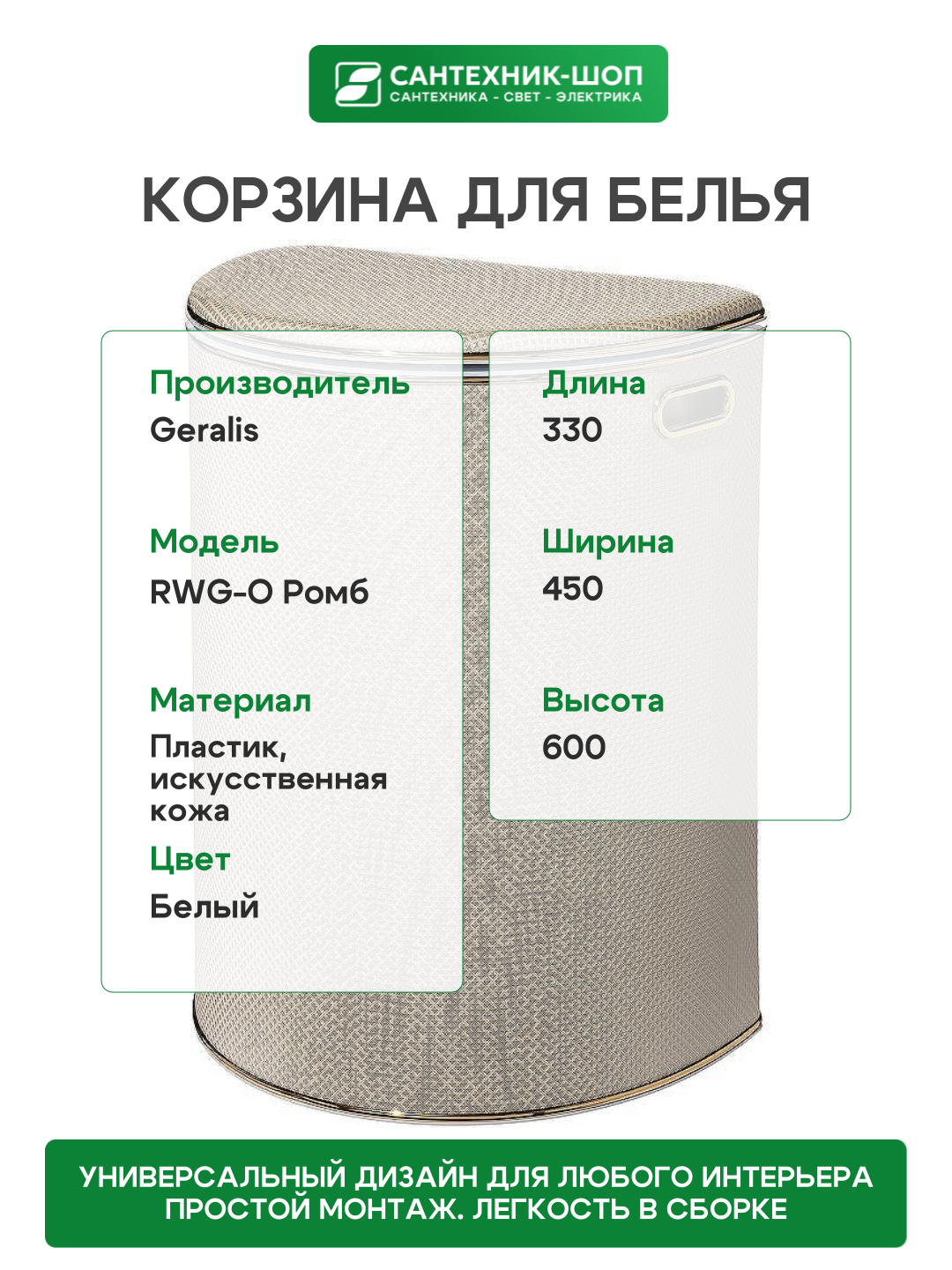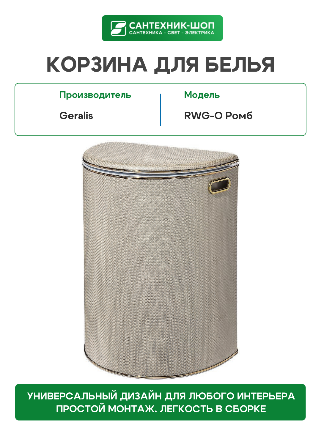 Корзина для белья Geralis RWG-O Ромб Белая, кант Золото, полукруглая: сравнение цен, характеристики, фото, актуальное наличие и цены.