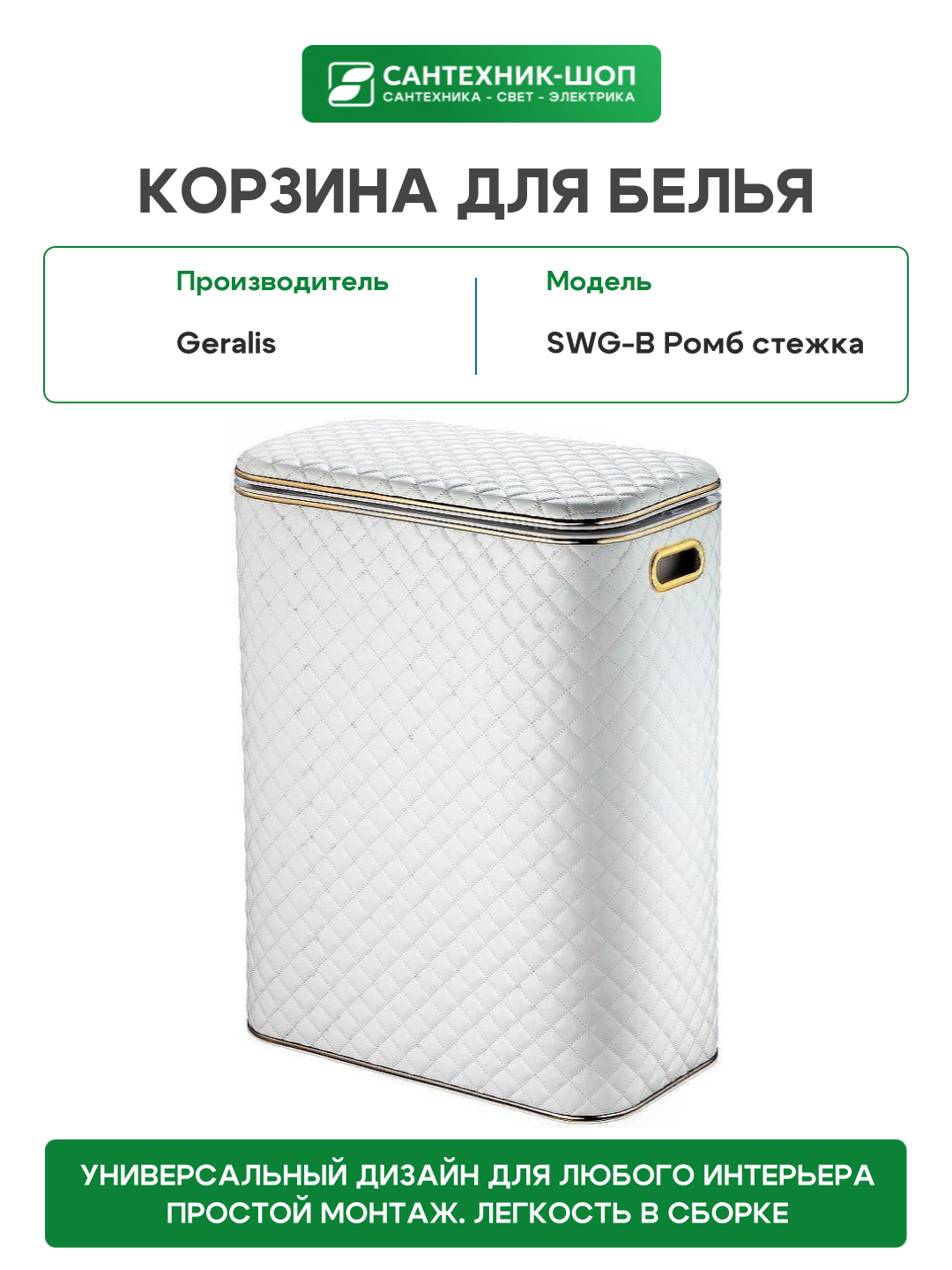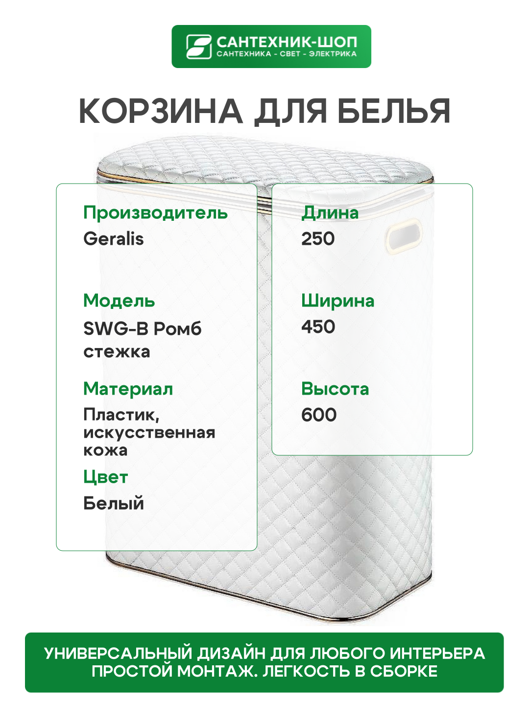 Купить Корзина для белья Geralis SWG-B Ромб стежка Белая, кант Золото, стандартная с доставкой по всей России. Корзина для белья Geralis SWG-B Ромб стежка Белая, кант Золото, стандартная: сравнение цен, характеристики, фото, актуальное наличие и цены.