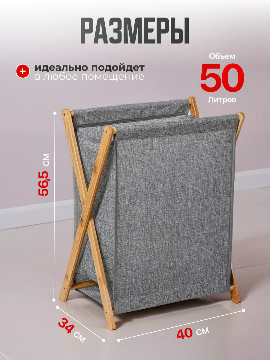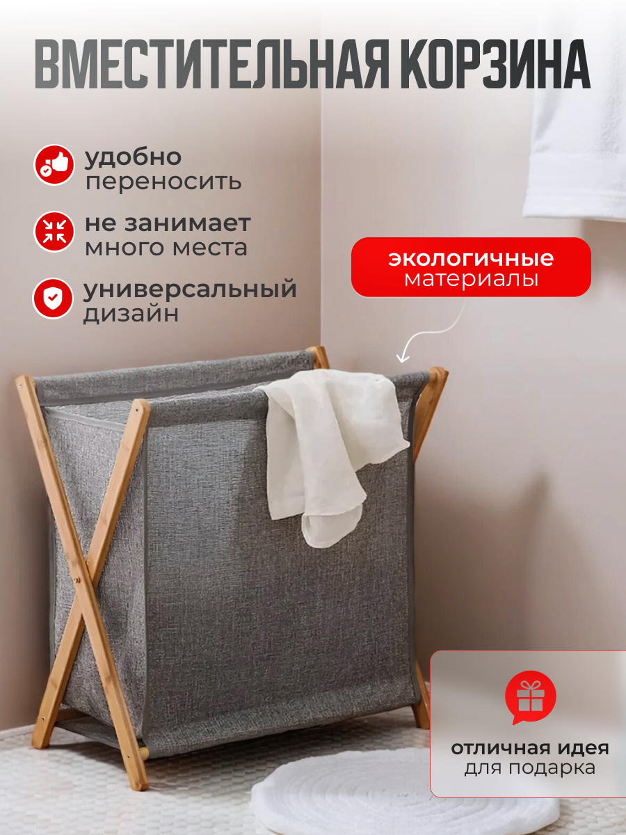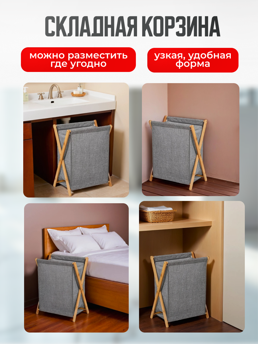 Корзина для белья в ванную комнату Homium Eco (размер 40*25*54 см, складная, цвет серый): сравнение цен, характеристики, фото, актуальное наличие и цены.