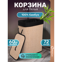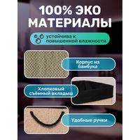 Бамбуковое плетение бака отлично держит форму и хорошо пропускает воздух. Корзинка оснащена водоотталкивающим покрытием, что предотвращает проникновение влаги и плесень, обеспечивая сухое и чистое хранение белья. Благодаря наличию крышки белье будет надежно защищено от пыли, грязи и посторонних запахов. Высокое качество и натуральные материалы гармонично сочетаются и создают в доме уютную атмосферу.