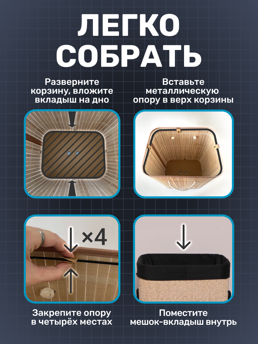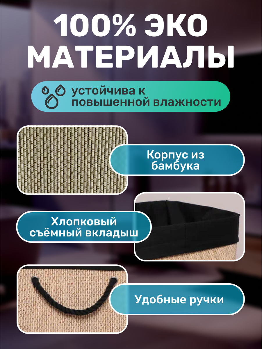 Больше никаких горок грязного белья на полу! С нашей бамбуковой корзиной Homium for Home спальня, ванная комната или детская всегда будут выглядеть опрятно и стильно. Простая и лаконичная прямоугольная форма (размер 40*30*60 см), натуральный цвет бамбука и контрастная отделка создают элегантный и минималистичный образ, который привносит в интерьер нотку природной элегантности. Прочные ручки позволяют легко переносить короб из комнаты в комнату, а натуральные материалы создадут атмосферу уюта и тепла в вашем доме.