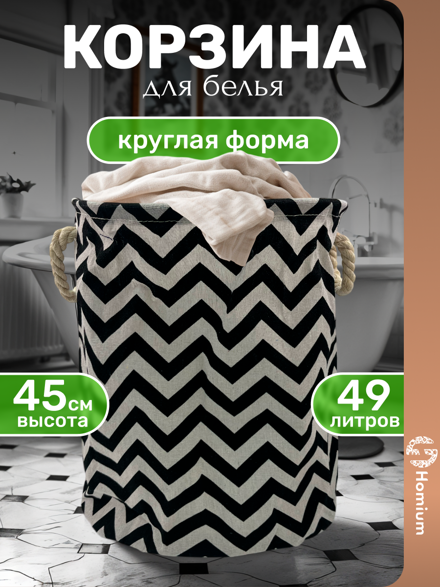 Купить Корзина для белья и хранения вещей Homium Round, цвет черный/белый, размер 35*45 см с доставкой по всей России.