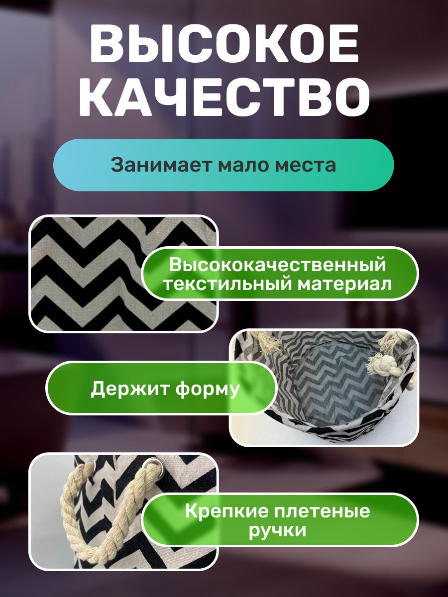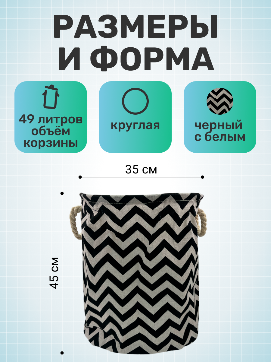 Корзина для белья и хранения вещей Homium Round, цвет черный/белый, размер 35*45 см: сравнение цен, характеристики, фото, актуальное наличие и цены.