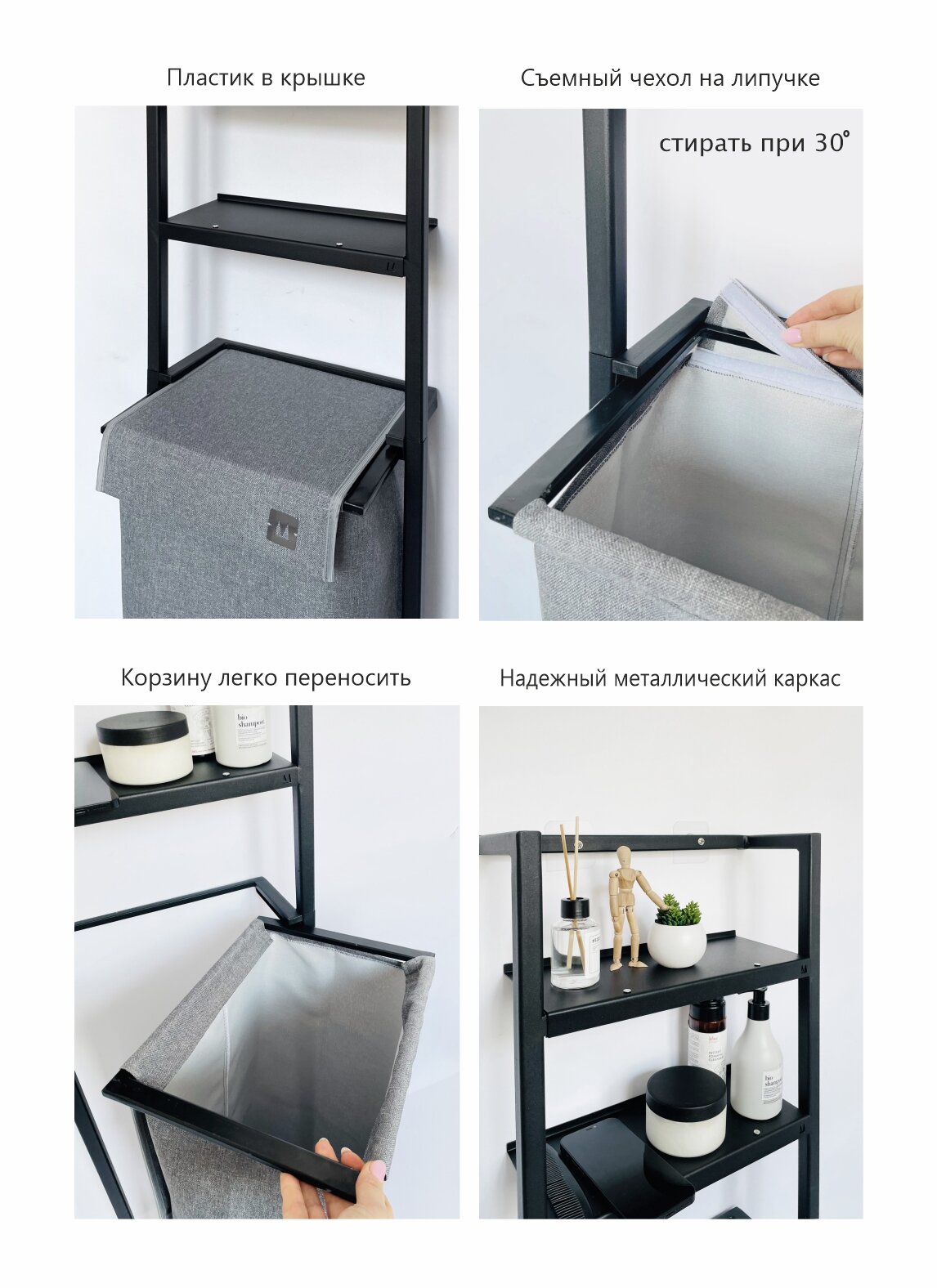 Узкая и удобная Корзина - стеллаж , отличное решение для хранения белья перед стиркой в ванную комнату. При высокой вместительности она занимает совсем немного места в помещении ванной . Не требует специального ухода: достаточно по мере надобности стирать тканевую основу и периодически протирать стальной каркас. Мешок изготовлен из ткани Рогожка, не мнется, не выцветает, имеет продолжительный срок службы. Надёжный металлический каркас изделия выполнен из стали и окрашен полимерной краской. На полках данного органайзера легко разместить всё необходимое - от косметических средств и бытовой техники до банных полотенец. Корзина для хранения легко выдвигается и надежно закреплена , так же ее можно вытащить и перетаскивать в другое место. Стильное решение для ванной комнаты.