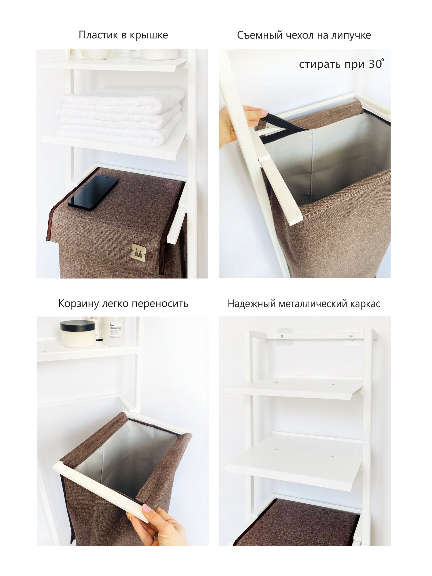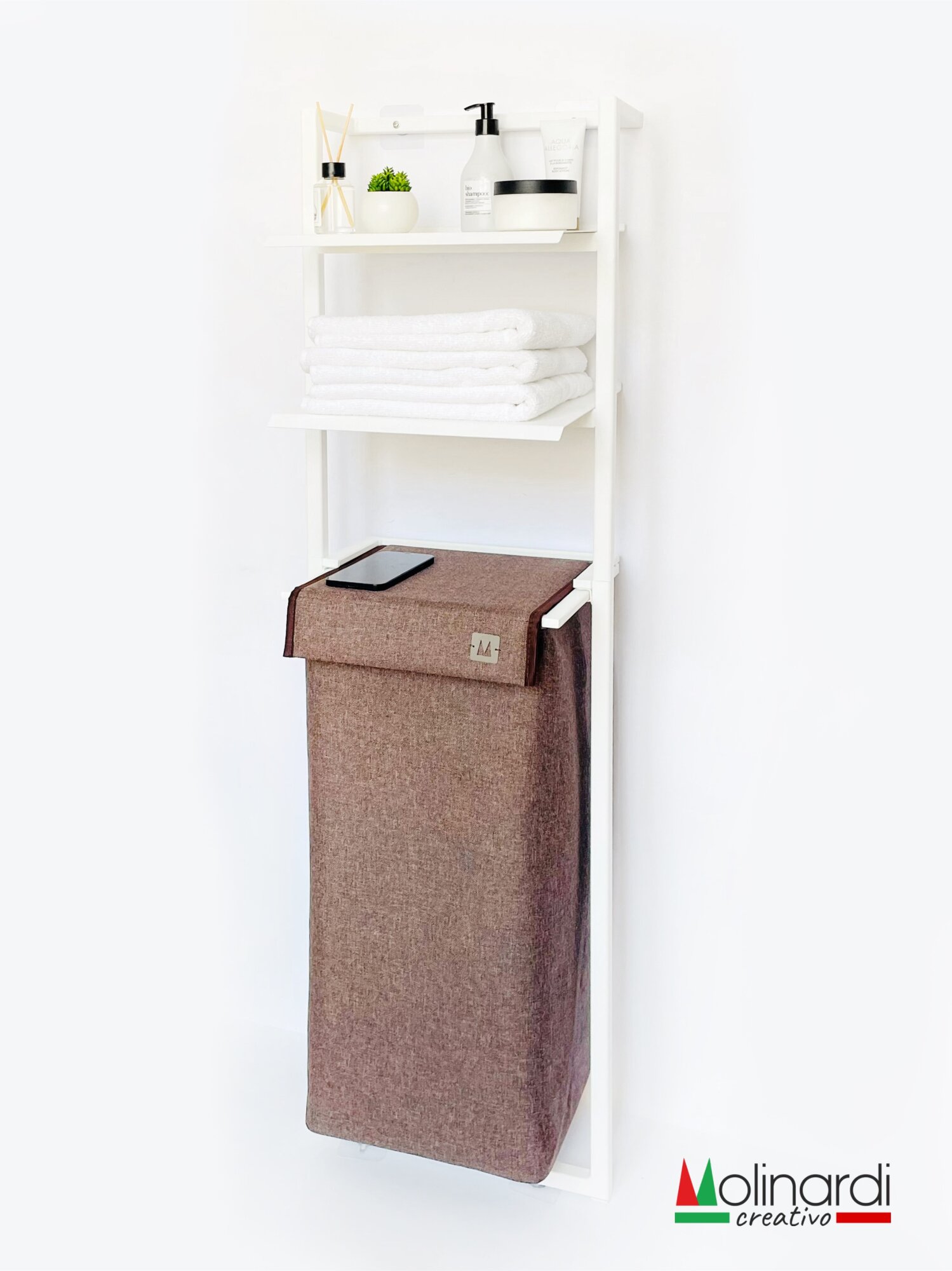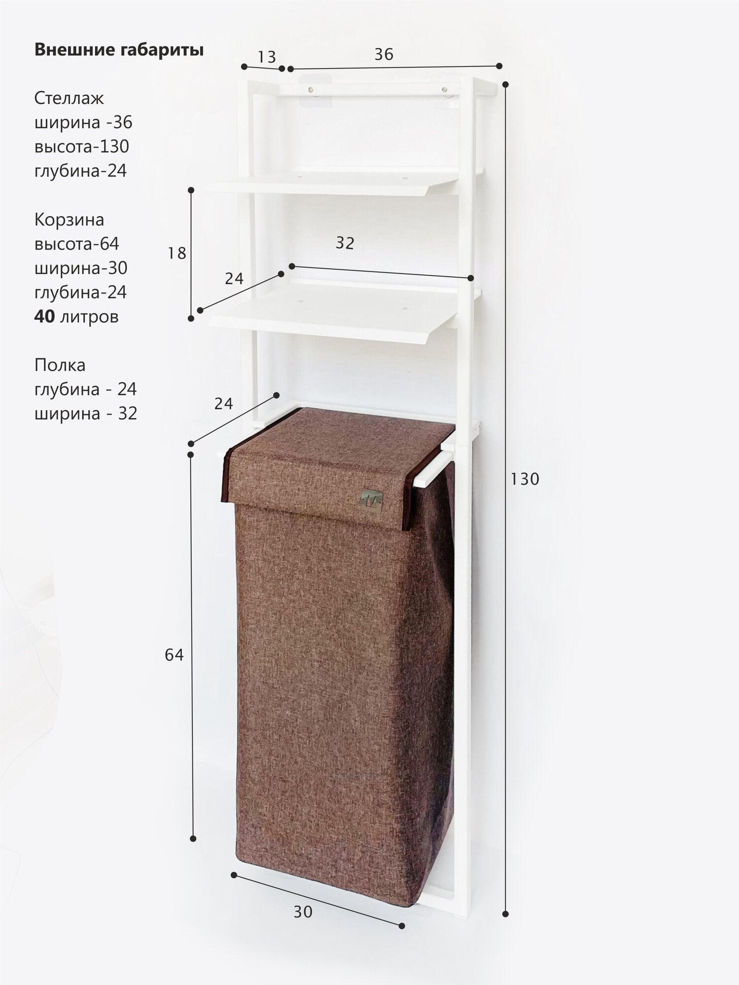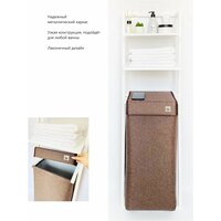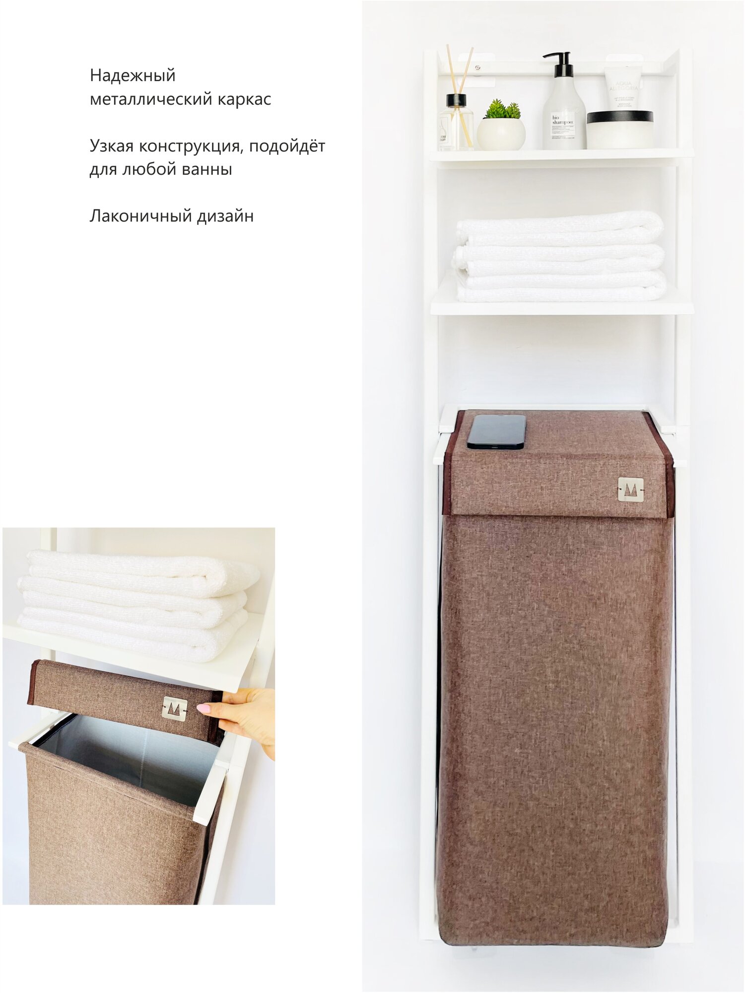 Узкая и удобная Корзина - стеллаж , отличное решение для хранения белья перед стиркой в ванную комнату. При высокой вместительности она занимает совсем немного места в помещении ванной . Не требует специального ухода: достаточно по мере надобности стирать тканевую основу и периодически протирать стальной каркас. Мешок изготовлен из ткани Рогожка, не мнется, не выцветает, имеет продолжительный срок службы. Надёжный металлический каркас изделия выполнен из стали и окрашен полимерной краской. На полках данного органайзера легко разместить всё необходимое - от косметических средств и бытовой техники до банных полотенец. Корзина для хранения легко выдвигается и надежно закреплена , так же ее можно вытащить и перетаскивать в другое место. Стильное решение для ванной комнаты.
