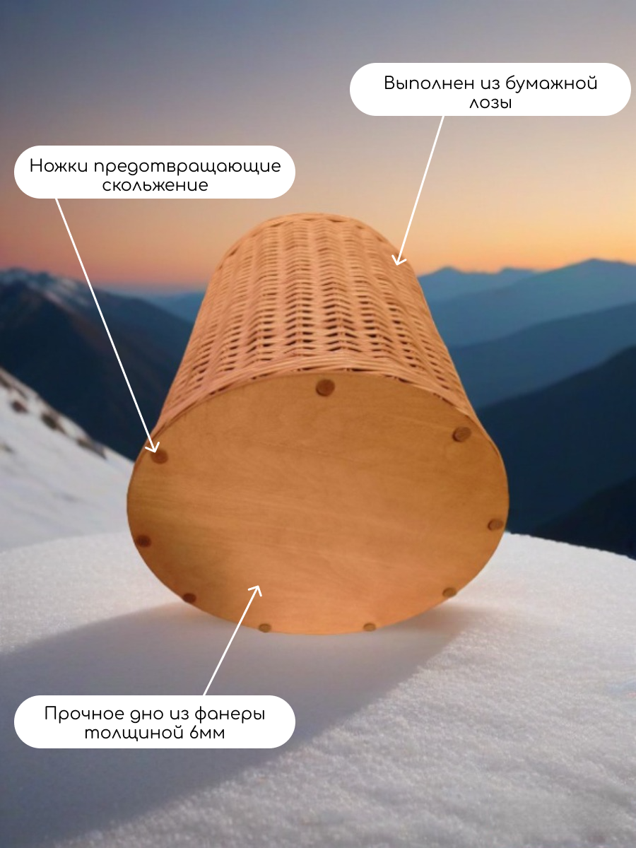 Плетёная корзина из бумажной лозы – стильное и удобное решение для хранения белья, игрушек и других вещей. Изготовленная из экологически чистого материала, она прочна, легка и долговечна. Её дизайн позволяет использовать корзину как в спальне, так и в детской комнате или на кухне, добавляя уют и организованность пространству. Дно выполнено из фанеры, на котором прикреплены фетровые накладки для устойчивости без скольжения. Эта корзина станет незаменимым помощником в уборке и создании порядка в доме