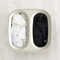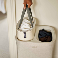 Это умная и стильная корзина оснащена двумя отделениями для сортировки белья и съемными сумками для легкого переноса большого объема к стиральной машине.