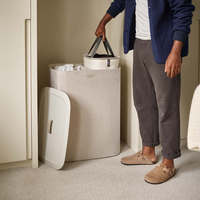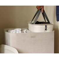 Это умная и стильная корзина оснащена двумя отделениями для сортировки белья и съемными сумками для легкого переноса большого объема к стиральной машине.