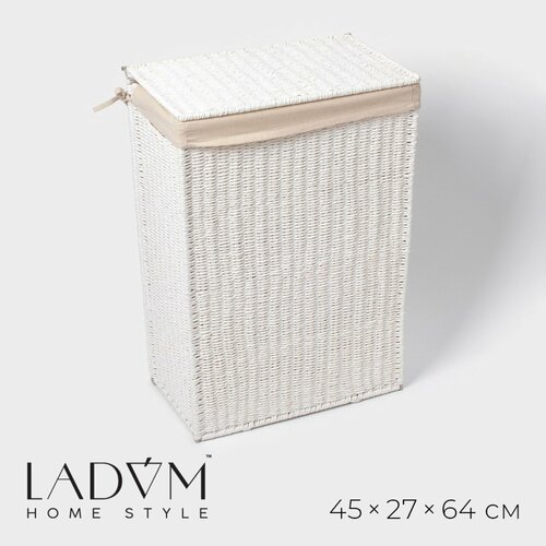 Корзина для белья LaDо́m «Классика», прямоугольная, 45×27×64 см, белая