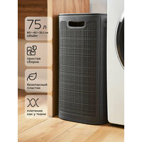 Корзина для белья «Лён», Альт-Пласт, 75л, графит, сборная, пластик: сравнение цен, характеристики, фото, актуальное наличие и цены.