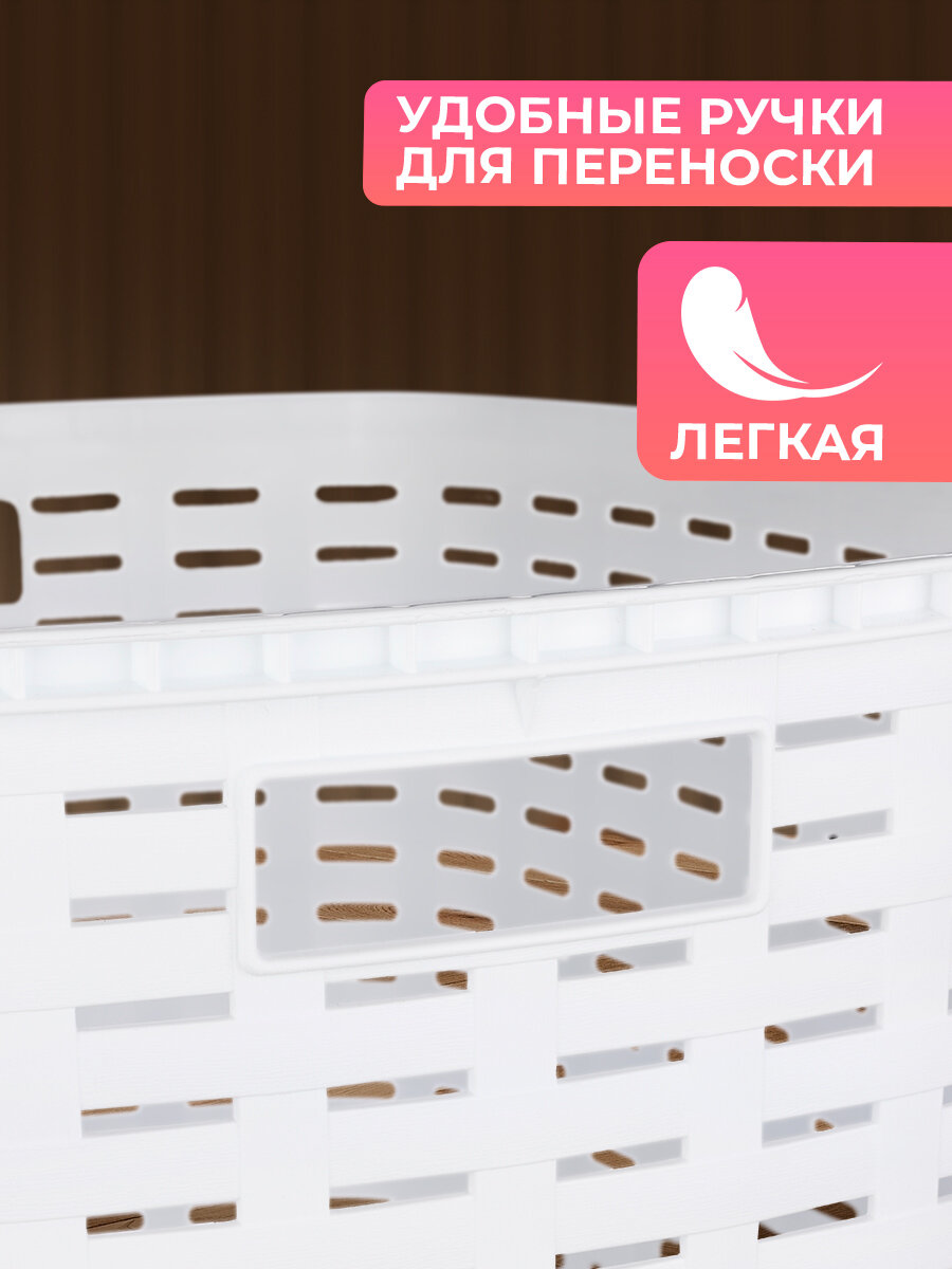 Купить Корзина для белья, 50 л, пластик, белая, Roso, 36920 с доставкой по всей России.