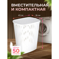 Корзина для белья, 50 л, пластик, белая, Roso, 36920