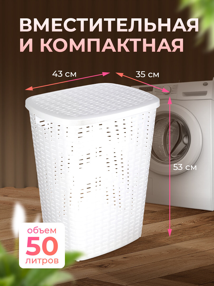 Корзина для белья, 50 л, пластик, белая, Roso, 36920: сравнение цен, характеристики, фото, актуальное наличие и цены.