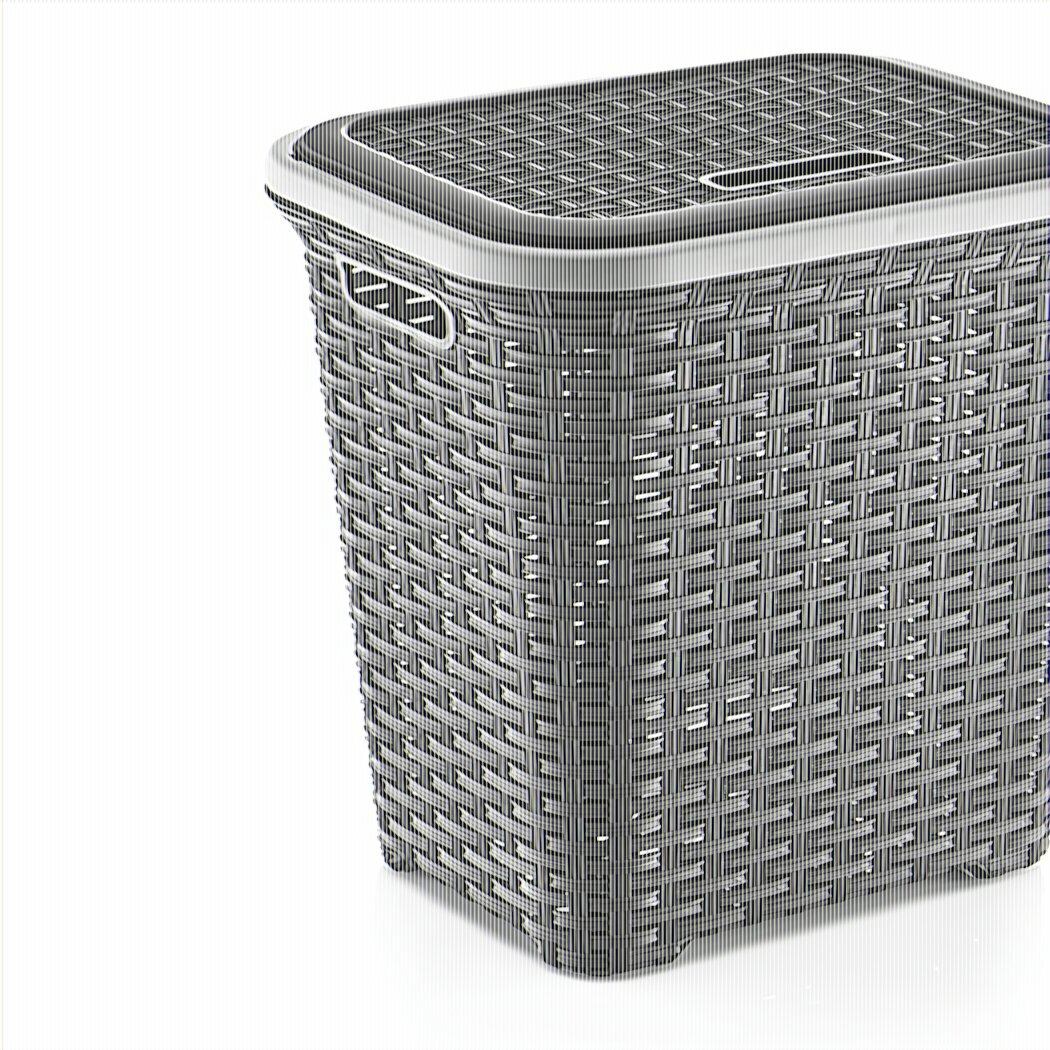 предназначена для хранения белья подлежащего стирке или глажке, материал пластик с тиснением и прорезями в виде узора, имеет встроенные боковые ручки для переноски