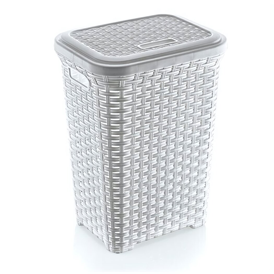 Корзина для белья Плетеная 50л, белая, легкая и прочная, для дома