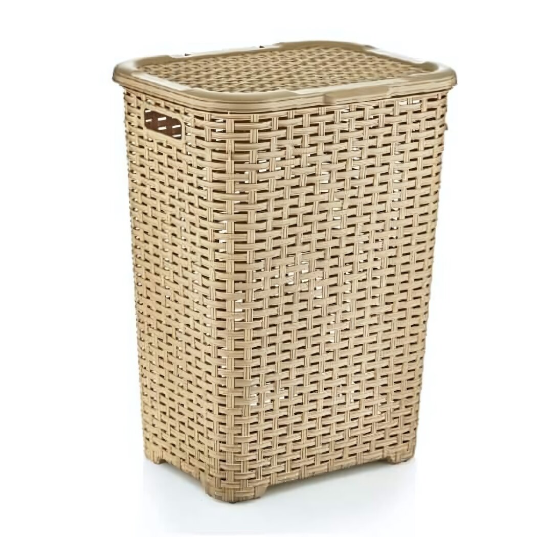 Корзина для белья Плетеная 60л, крем, ручки, стильный дизайн, для дома