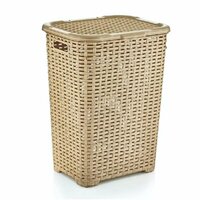 предназначена для хранения белья подлежащего стирке или глажке, материал пластик с тиснением и прорезями в виде узора, имеет встроенные боковые ручки для переноски