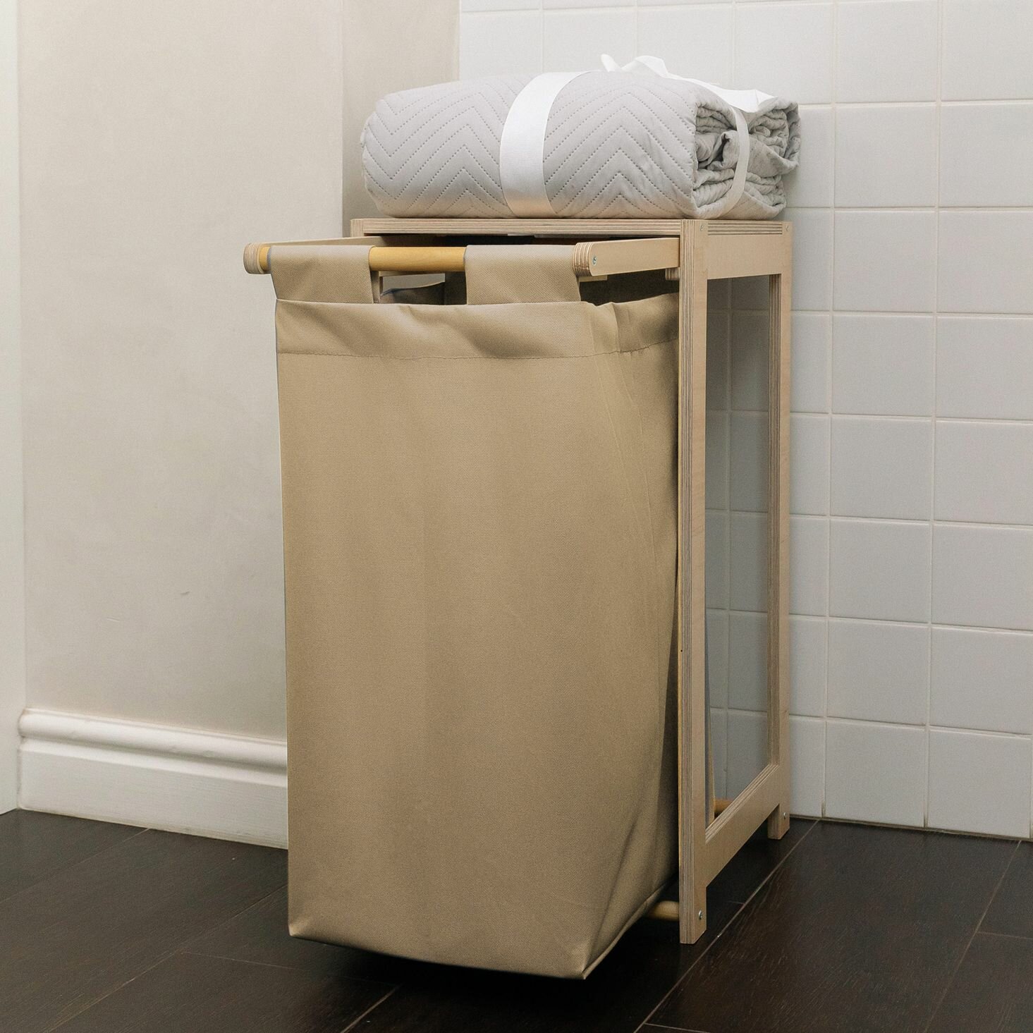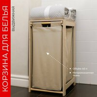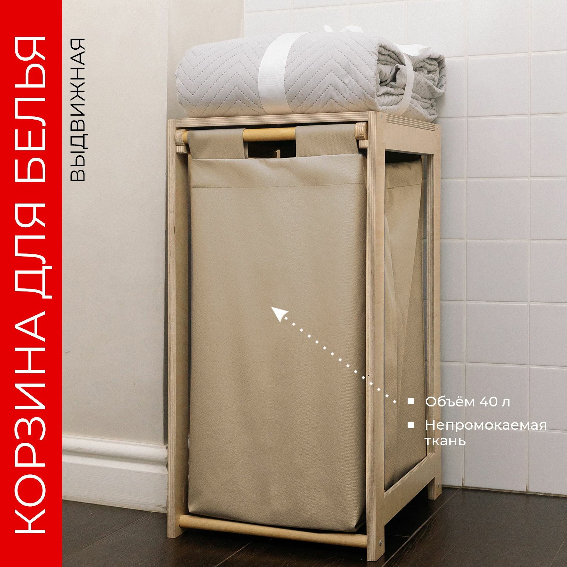 Выдвижная корзина - универсальный и удобный вариант в ванной комнате, кладовке, коридоре или детской. Корзину можно использовать как для белья, так и для игрушек. Размер подставки: 60х30х35 см, корзины: 47х35х27 см, объем корзины 40 литров. Подставка выполнена из ламинированной влагостойкой фанеры, если вы будете использовать ее в ванной комнате, то можете не переживать за возможное расслоение от влаги. Корзина изготовлена из прочной водоотталкивающей ткани, с тефлоновым покрытием, которая не порвется при полной загруженности, при сильном загрязнении моется обычной губкой. Корзина съемная. Такой стеллаж с выдвижной корзиной хорошо впишется в интерьер и поможет эффективно использовать каждый сантиметр пространства! Товар доставляется в разобранном виде, требуется сборка по инструкции. В виду плотности материала для сборки лучше пользоваться шуруповертом.