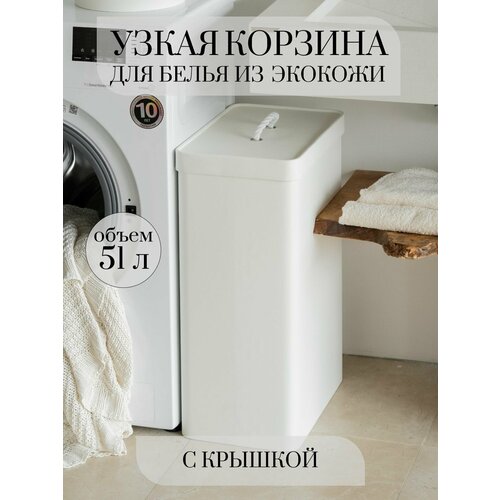 Ищите стильное и практичное решение для хранения грязного белья? Корзина для грязного белья белая от бренда Rompicato — идеальное решение! Эта узкая корзина для белья с крышкой, изготовленная из качественной экокожи, не только приятна на ощупь, но и долговечна. Её вместительность составляет 51 литр, что делает её отличным баком для белья в ванную. Минималистичный дизайн без лишних деталей делает эту корзину для белья идеально подходящей для любого интерьера, а её компактные размеры позволяют легко впитаться даже в небольшое пространство.