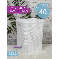 Корзина для белья с крышкой Ротанг 40л Violet, цвет белый / бельевой бак для ванной: сравнение цен, характеристики, фото, актуальное наличие и цены.