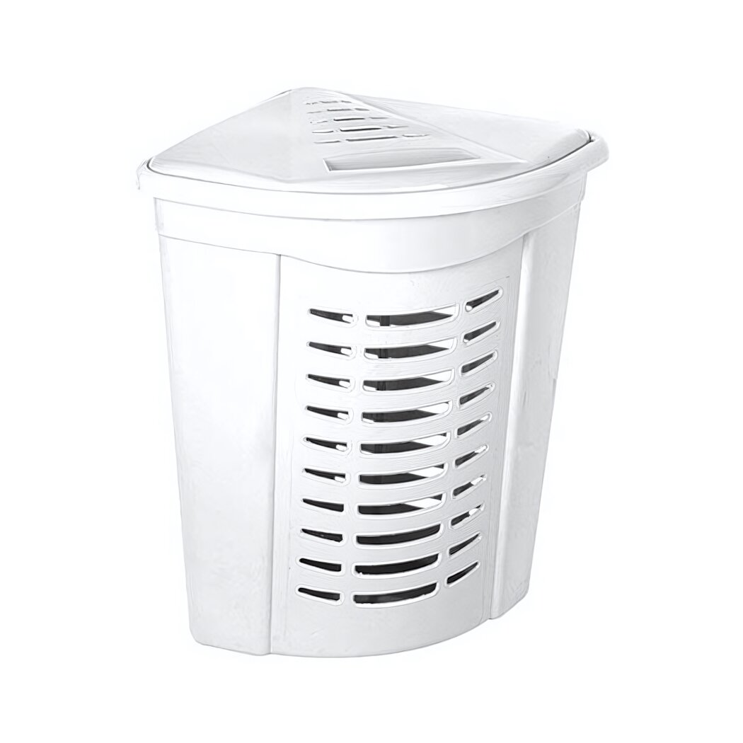 Купить Корзина для белья угловая 45л, белая пластиковая, компактная, вентиляция с доставкой по всей России. Корзина для белья угловая 45л, белая пластиковая, компактная, вентиляция: сравнение цен, характеристики, фото, актуальное наличие и цены.